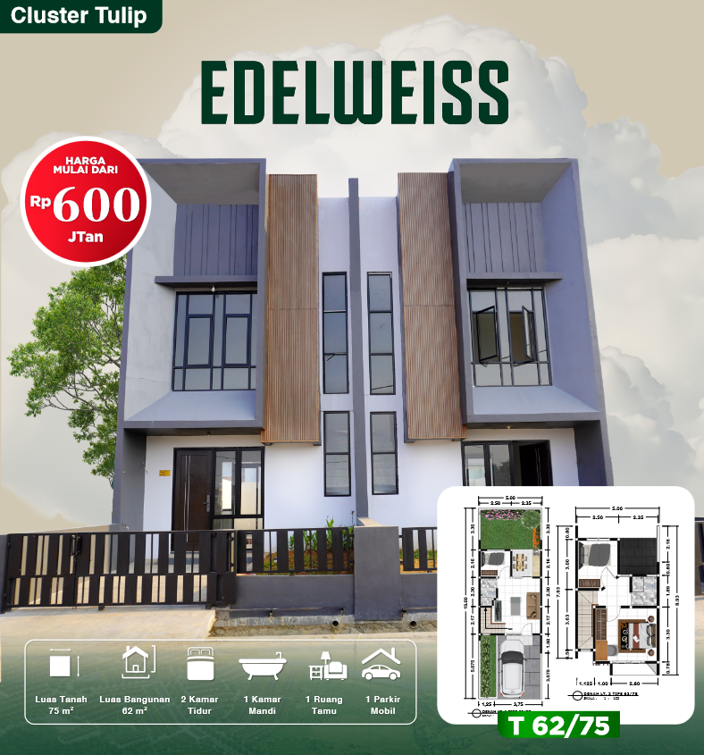 Cluster Tulip berkonsep One Gate System dan Smarthome, serta dilengkapi Fasilitas Club House, Swimming Pool, Rooftop dan Resto di Perumahan Puri Harmoni Pasirmukti